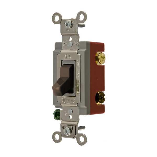 Wall Switch, Color Brown, Current Rating 20 A, Switch Function Maintained, Switch Type 3-Way, Voltage Rating 120/277V AC, Wiring Method Back, Side, Horsepower Rating 1 hp, Locking Style Not Applicable, Maximum Wire Size 10 AWG, Minimum Wire Size 14 AWG, Number of Switches 1, Resistance Properties Shatter and Crack Resistant, Impact Resistant, Standards UL Listed, Switch Style Toggle, Wire Connection Type Screw Terminals