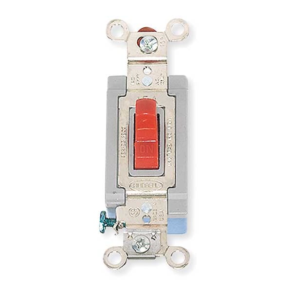 Wall Switch, Color Red, Current Rating 15 A, Switch Function Maintained, Switch Type Single Pole, Voltage Rating 120/277V AC, Wiring Method Back, Side, Horsepower Rating 1/2 hp, Locking Style Not Applicable, Maximum Wire Size 10 AWG, Minimum Wire Size 14 AWG, Number of Switches 1, Resistance Properties Shatter and Crack Resistant, Impact Resistant, Standards UL Listed, Switch Style Toggle, Wire Connection Type Screw Terminals