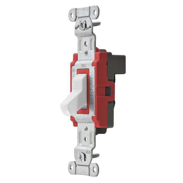 Wall Switch, Color White, Current Rating 20 A, Switch Function Maintained, Switch Type Single Pole, Voltage Rating 120/277V AC, Wiring Method Back, Horsepower Rating 2 hp, Locking Style Not Applicable, Number of Switches 1, Resistance Properties Impact Resistant, Standards UL Listed, Switch Style Toggle, Wire Connection Type Modular Wiring, Features Automatic Self-Grounding Staple Assures Continuity to Wall Box, Grounding Grounded, Housing Material Thermoplastic, Market Industrial