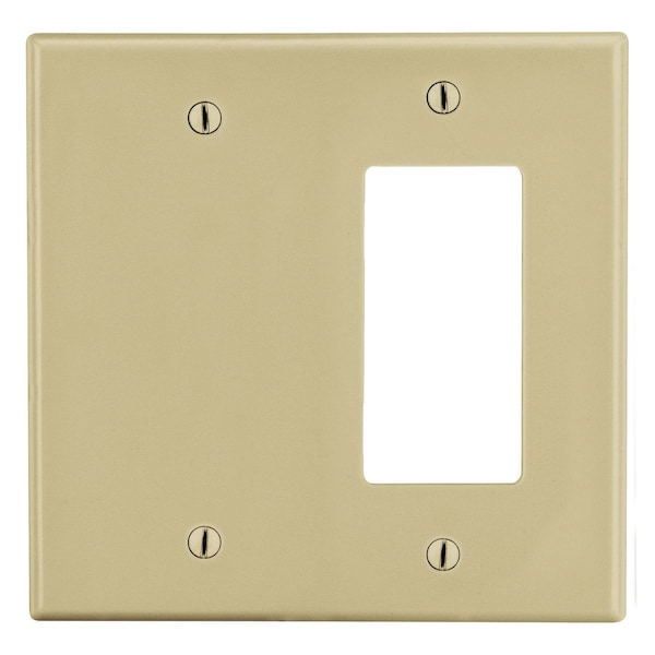 Wallplate, Mid-Size 2-Gang, 1) Decorator 1) Box Mount Blank, Ivory