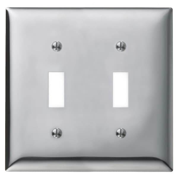 Wallplates and Boxes, Metallic Plates, 2- Gang, 2) Toggles, Standard Size, Chrome Plated Steel