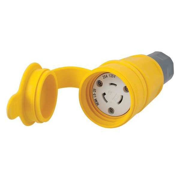 Watertight Locking Connector, L5-20R, 20 A, 125V AC, Single Phase, 2 Pole, Screw Terminals, Yellow