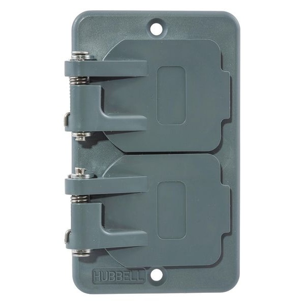 Watertight Cover, For Use With Duplex Receptacle, Mounting Orientation Vertical, Lid Style Self Closing, Number of Gangs 1, Material Thermoplastic Elastomer, Gasket Material Neoprene, Color Gray, Height 3-51/64 In., Width 2-13/64 In., NEMA Rating 3R, Standards UL and CSA