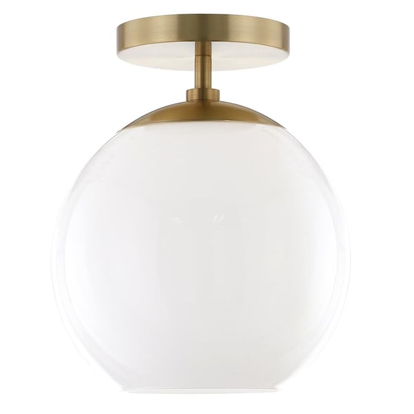 Henn w/ Hart Bartlett Brass Semi Flush Mount Ceiling Light with White Milk Glass