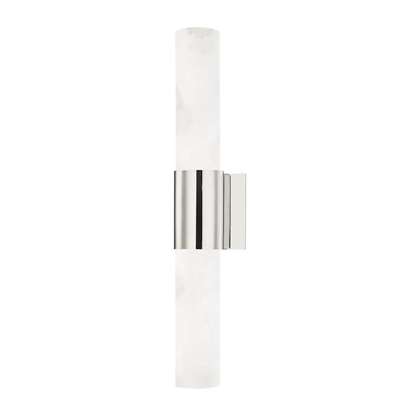 Barkley's band of cast metal and alabaster diffuser make it an attractive bath and vanity piece, providing plenty of soft illumination for self-care rituals. The offset backplate finish is available in Aged Brass, Old Bronze, and Polished Nickel. *Due to the one-of-a-kind nature of the medium, exact colors and patterns may vary slightly from the image shown.