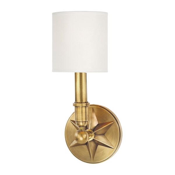 This 1 Light Wall Sconce is part of the BETHESDA Collection and has a Aged Brass Finish.