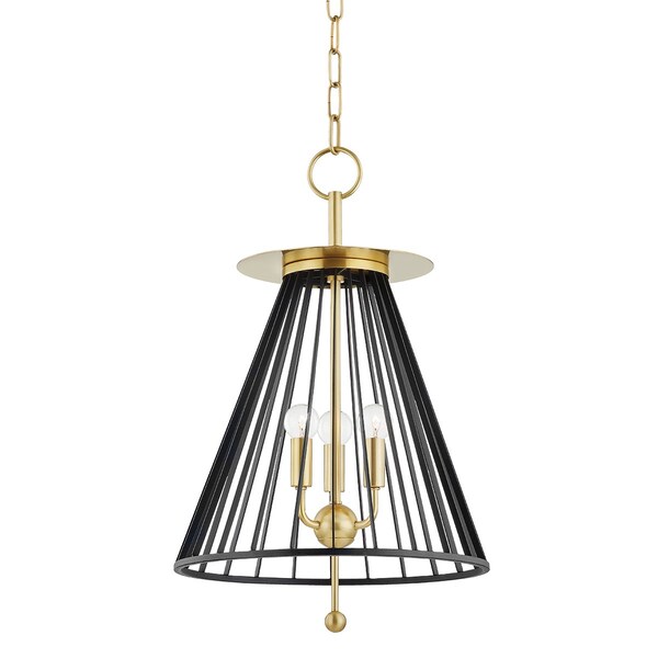 Cagney 3 Light Pendant 14 In. Aged Brass/Black