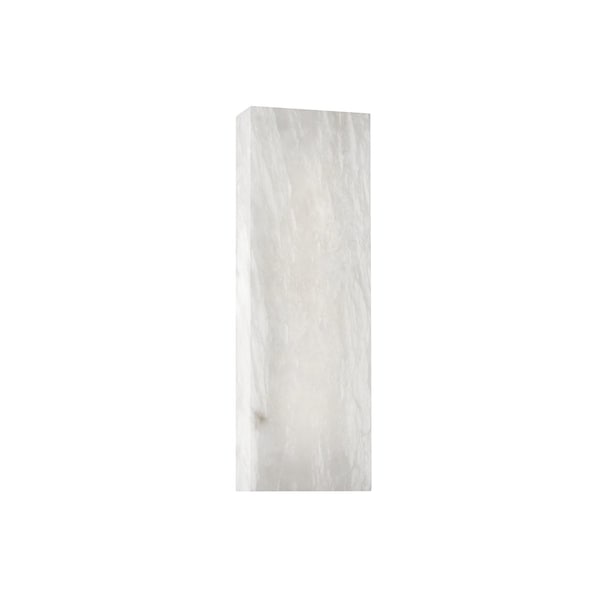 With no visible hardware, this ultra-clean, crisp sconce is ideal for a minimalist environment or to give any space an instant contemporary feel. The rectangular, white Spanish alabaster diffuser extends less than 3 inches. Open at the top and bottom, light shines above and below as well as through the alabaster creating a beautiful, well-lit look.