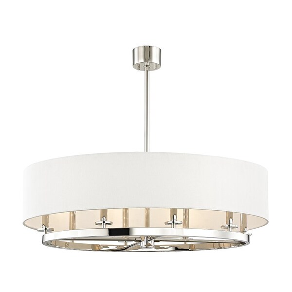 Durham sets a wheel alight, softened by a wide drum shade of off-white linen. Set in a streamlined style that doesn't evoke any specific age, Durham works especially well in transitional and neutral spaces. PLEASE NOTE that the body and shade of 6539 is oval; 6530 and 6542 are circular.