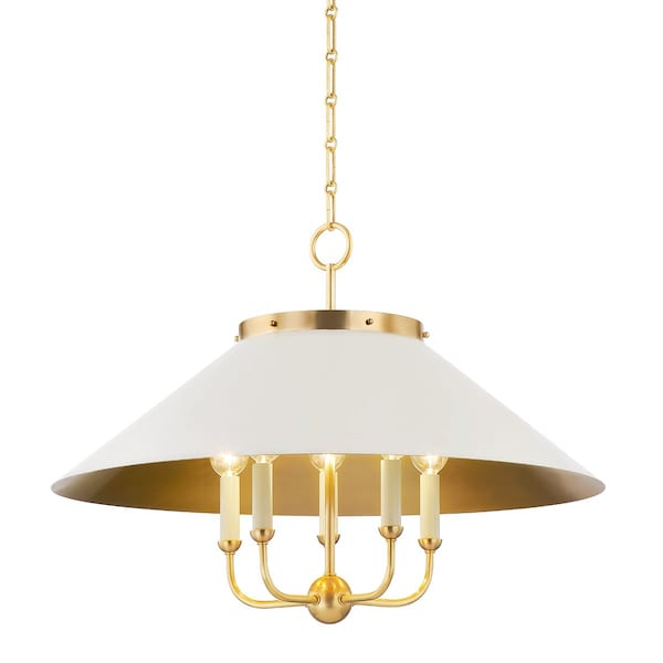 Mark D. Sikes X Clivedon 5 Light Chandelier 27.5 In. Aged Brass/Off White
