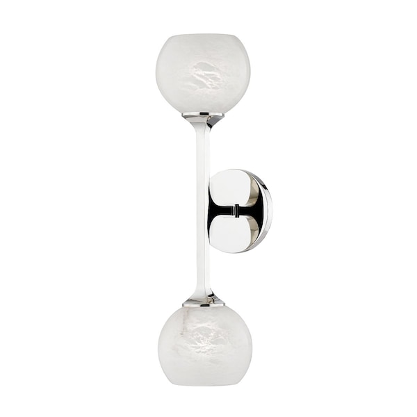 Gorgeously shaped cast metal arms in Aged Brass or Polished Nickel hold beautiful alabaster globe shades to create Melton's elegant, luxurious design. A soft glow fills the alabaster and accentuates the material's unique veining. Available as a 1-light sconce or 2-light.
