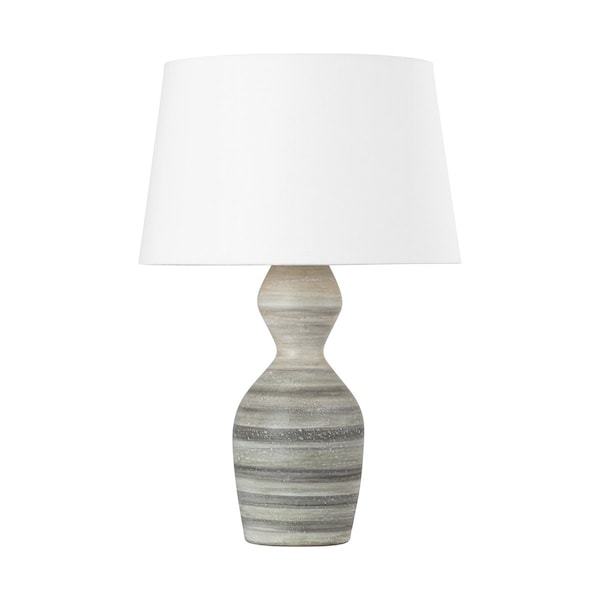 The dynamically sculpted white dune ceramic body of Nahant appears to have been weathered by sand over time. The striations of color create an organic effect reminiscent of natural stone. Balanced by an off-white linen shade, this table lamp has a warm and inviting presence.