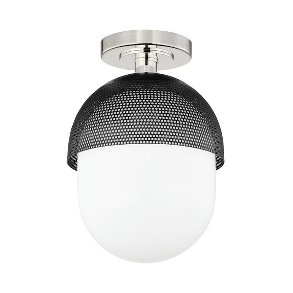 Nyack 1 Light Semi Flush 9 In. Polished Nickel/Black