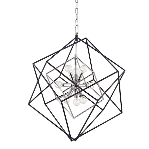 This impressive conversation starter features a series of ever-increasing cubes surrounding a Sputnik-style center. Choose from Aged Brass or Polished Nickel and multiple sizes to fit any space.