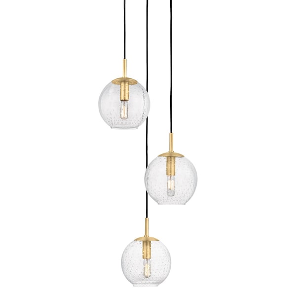 Rousseau 3 Light Chandelier 13.5 In. Aged Brass
