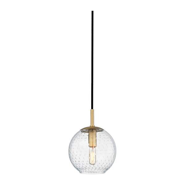 This 1 Light Pendant-Clear Glass is part of the Rousseau Collection and has a Aged Brass Finish.