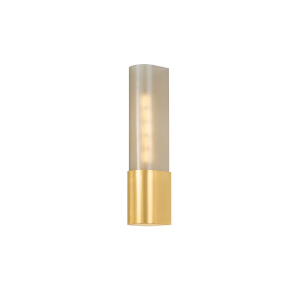 Melding bronze glass with sleek metalwork, the Somersville family includes two timeless, versatile sconces. Suited for a variety of small spaces, the bullnose shape of these fixtures creates a monolithic look. The light bronze glass is etched inside, creating a softly patinated appearance that conceals the light source. When illuminated, the Aged Brass finish of the metalwork glints off the glass shade.