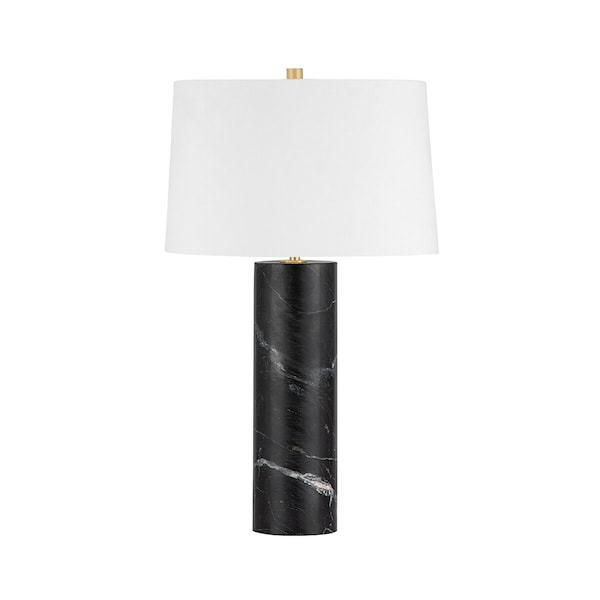 A luxurious statement piece perfect for a table or console, Sprague features an elegant black marble body and classic white linen drum shade. The lightness of the shade, coupled with the visual weight of the dark base, creates a dramatic point of contrast. The delicate veining of the marble base provides a bespoke feel thats full of character and life. *Due to the one-of-a-kind nature of the medium, exact colors and patterns may vary slightly from the image shown.