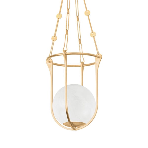 A delicate Vintage Gold Leaf cage, gracefully swirling cloud glass orb and intricate suspension chains converge to create this mesmerizing pendant light. Exhibiting a jewelry-like appearance, Verbank is enhanced by its subtle details, including circular ornaments on the chains and Art Deco-inspired curves. Like a planetary body glowing in the sky, this is a truly magical lighting experience.
