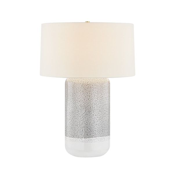 The pleasing, graphic shape of the Washingtonville table lamp is paired with a highly artisanal, textural ceramic finish. Its smooth, pill-shaped base features a Blue Shore glaze with a subtle, speckled texture. The softly curving base is paired with an oversized white linen drum shade, creating an organic look for contemporary interiors.*Due to the one-of-a-kind nature of the medium, exact colors and patterns may vary slightly from the image shown.