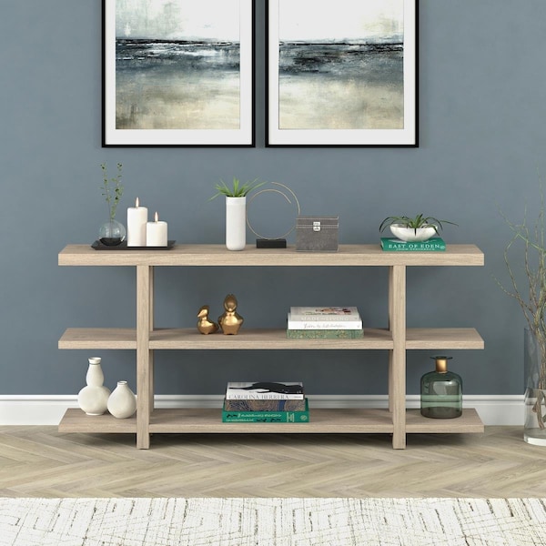 Acosta 64 Wide Rectangular Console Table in Antiqued Gray Oak