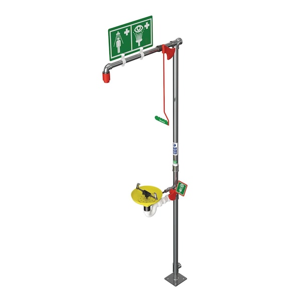 Shower with Eyewash, Barrier Free No, Bowl Style Uncovered, Coverage Eyes and Face, Eyewash Bowl Material Plastic, Hazardous Location Rating Not Rated, Includes Safety Shower Sign, Universal Eyewash Sign, Includes Foot Pedal No, Includes Showerhead Shroud No, Inlet Connection Location Top, Inlet Pipe Gender Female, Inlet Pipe Size 1 1/4 in, Inlet Pipe Thread Type NPT, Pipe Material Galvanized Steel, Shower Spray Head Material Plastic, Sub-Brand Justrite Safety Group, Includes Drench Hose No