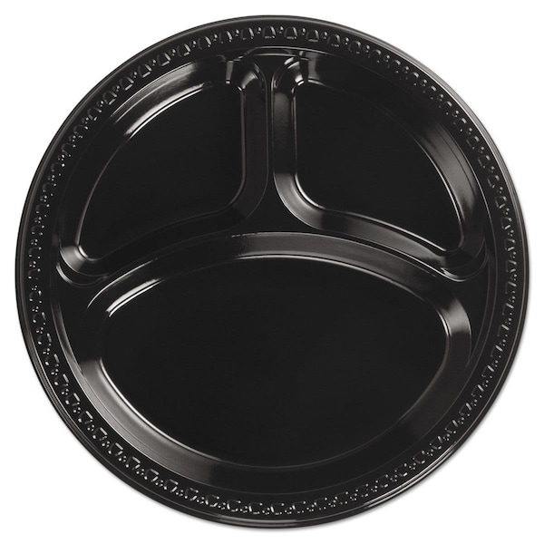 10.25 in. Heavyweight Plastic 3 Compartment Plate, Black