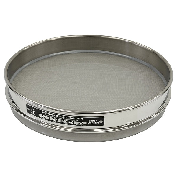 Standard Stainless Steel Cloth Test Sieve, Plain Weave, Stainless Steel Screen Material, Stainless Steel Frame Material, Mesh Size Fine, Mesh Size Range Fine, Wire Dia. -, Opening Size 250 micron, Outside Dia. 8 in, Overall Depth 1 in, AASHTO M92, ASTM E11 Standards