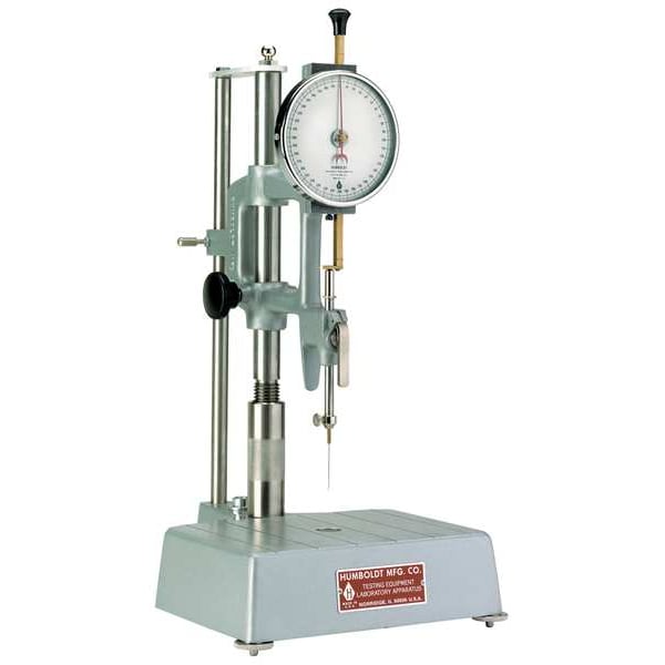 Laboratory Penetrometer, Range Dependent on Penetration Needle or Cone Used, Features 5 in Analog Indicator, Complies With ASTM AASHTO T49, ASTM D1168, ASTM D1191, ASTM D1321, ASTM D1403, ASTM D1831, ASTM D1855, ASTM D217, ASTM D5, ASTM T187, Includes 100 g Loading Weights, 47.5 g Plunger with 3.2 mm Hole, 50 g Loading Weights, Instructions, Manufacturers Warranty Length 6 mo