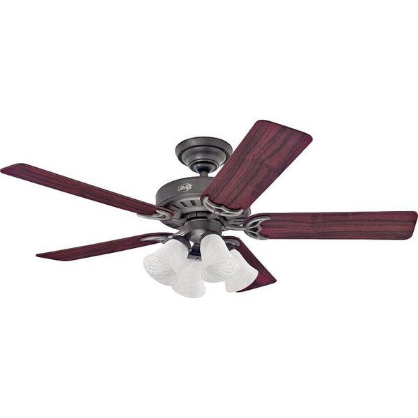 The most classic ceiling fan in Hunter's line, this traditional design will keep your room fresh and revitalized for years to come Choose from a wide selection of finishes to make sure you pick the prime option for your decor This fan is big enough to move air in large spaces and provides excellent lighting with its four exposed incandescent bulbs