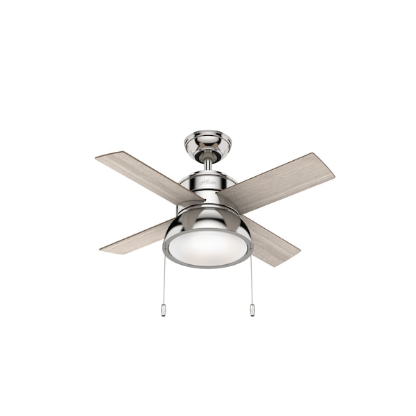 Decorative Ceiling Fan, 36 in Blade Dia, 4 Blades, 4 Speeds, 120, Polished Nickel