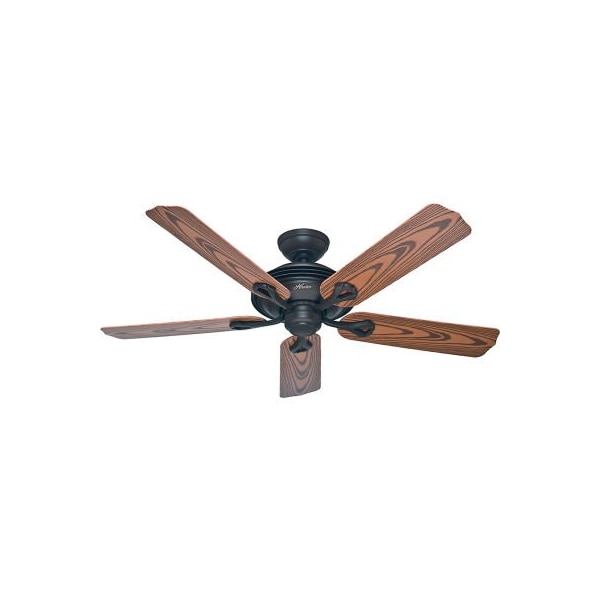 Hunter fan mariner 52in outdoor ceiling fan 59126 - new bronze hunter's 52in mariner ceiling fan can turn a back porch into a breezeway with the flip of a switch. This casual new bronze fan is etl wet listed for outdoor use in covered and uncovered applications and includes 5 weatherproof plastic oak blades to resist the elements. It's relaxed, comfortable style and three speed settings let you set the breeze to suit your desired comfort. To top it off, it's powered by an energy star rated, high performance whisperwind motor that delivers ultra-powerful air movement with whisper-quiet performance so you get the cooling power you want, without the noise you don't. features: whisperwind motor installer's choice three-position mounting system dust armor blade coating repels dust buildup etl wet listed for use in covered and uncovered applications limited lifetime warranty