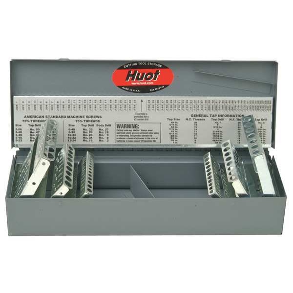 Drill Bit Case, Jobber Length, Holds 1/16 In. to 1/2 In. Fractions by 64ths, 1 to 60 Wire Gauge, A to Z, Steel, Overall Case Width (In.) 13-1/2, Overall Case Depth (In.) 4-5/8, Overall Case Height (In.) 2-1/4, Number of Compartments 115, Number of Drawers 1, Lock Included No, Tools Not Included