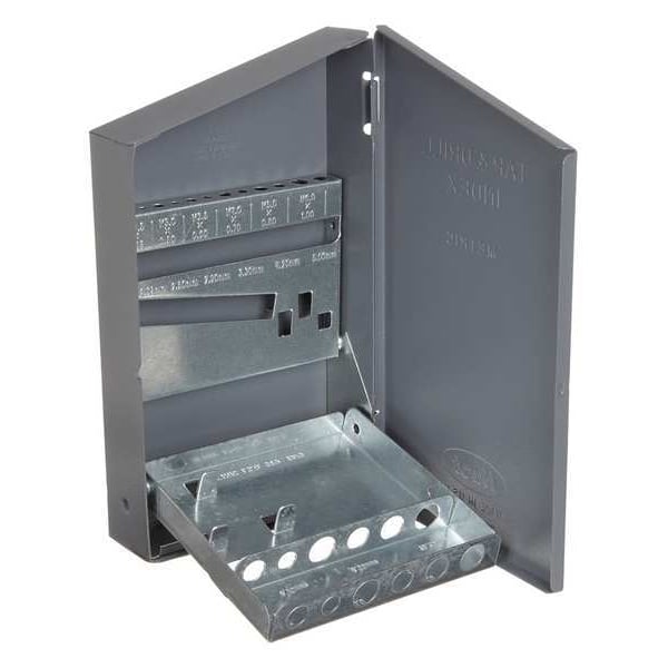 Drill Bit Case, Jobber Length, Holds 1 to 6mm by 0.5mm, Steel, Overall Case Width (In.) 4, Overall Case Depth (In.) 5-1/2, Overall Case Height (In.) 1/2, Number of Compartments 11, Number of Drawers 1, Lock Included No, Tools Not Included