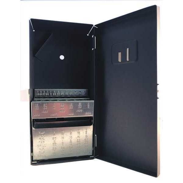 Drill Bit Case, Taper Length, Holds 1/16 In. to 1/2 In. by 64ths, Steel, Overall Case Width (In.) 4, Overall Case Depth (In.) 8-3/4, Overall Case Height (In.) 1-3/4, Number of Compartments 29, Number of Drawers 1, Lock Included No, Tools Not Included