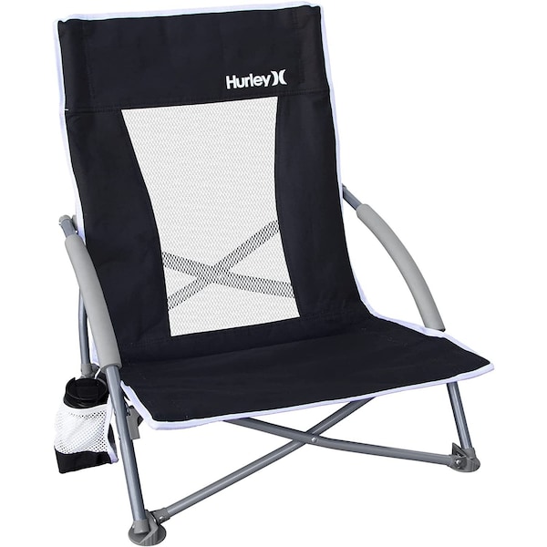 Sit back, relax, and stretch your legs in the Hurley Low Sling Beach Chair. With a 300-pound weight capacity, you can rest easy knowing this chair will hold up to the wear and tear of outdoor use. A comfortable recline design puts you low and close to the action. Padded foam armrests and cup holder add to your relaxation. Transport and store your chair with ease using the protective carry bag. This chair is ideal for beach outings, the park, or anywhere you need an outdoor seat.
