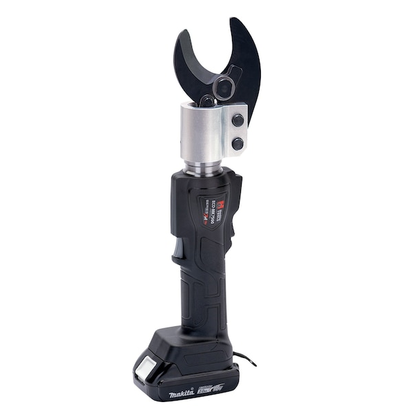 ECOMK75001 inline cutting tool features a lightweight ergonomic design and fully rotating head for easy one hand operation Powerful 6 ton output and optimized blade design easily and cleanly cuts copper up to 500 MCM and aluminum up to 1 Dia 180 degree rotating head 75KV rated for live line use 1 year tool3 year battery warranty Tool, 1 Makita 18V battery 2Ah, AC Charger, bag