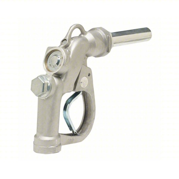 Fuel Nozzle, Overall Length 15 1/4 in, Features 1690/1691 Nozzle Shuts off when the Container is Full, Design includes a Self-Adjusting Stem Packing, Designed with Extra Large Hand Opening to Accommodate Gloves or Mittens, Equipped with Dual Poppets for Easy Opening, Primary Color Gray, Includes Not Applicable, Spout Material Aluminum, Nozzle Material Aluminum, Spout Connection Size 1 1/2 in, Spout Discharge Size Not Applicable, Spout Length 7 in, Inlet Type NPT, Inlet Size 1 1/2 in