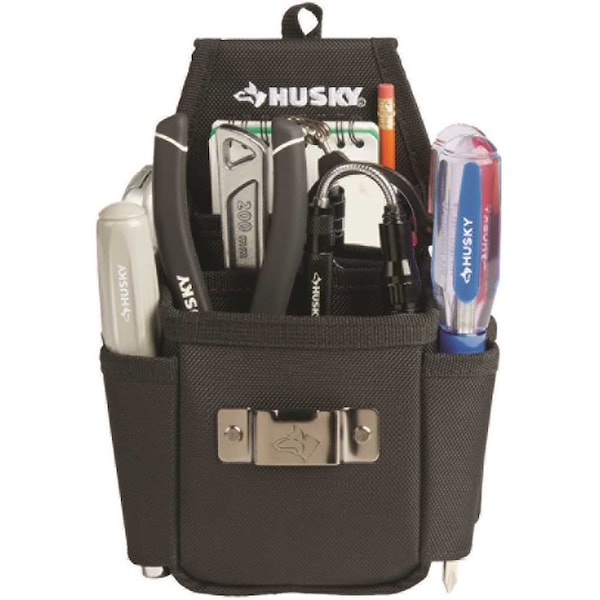 The Utility Plus Pouch is just what you need to carry a lot of your tools that you need to keep on you while you work. It holds everything from tape measures to notepads to small tools to your long tools. Its made to last with heavy-duty fabric. It has a padded flap that is easily attaches over a belt without removing it or fits in a pants pocket.Back flap fits inside pants pocket or over beltPoly ripstop/600d poly material2 main compartments4 open bottom pockets for long toolsTape measure clip4 in. notebook pocketDimensions: 6.7 in. W x 4.3 in. D x 10.1 in. H. THIS PRODUCT CAN EXPOSE YOU TO DI2-ETHYLHEXYL PHTHALATE DEHP, WHICH IS KNOWN TO THE STATE OF CALIFORNIA TO CAUSE CANCER AND BIRTH DEFECTS OR OTHER REPRODUCTIVE HARM. For more information go to www.P65Warnings.ca.gov