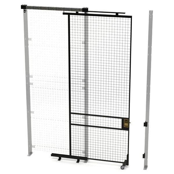 Tunnel Sliding Door, Wire Mesh Opening Height 2 in, Wire Mesh Opening Width 2 in, Powder-Coated, Overall Height 10 ft, Overall Depth 1 3/4 in, Overall Width 4 ft, Black, Includes Mounting Hardware Yes, Steel, Wire Thickness 8 ga