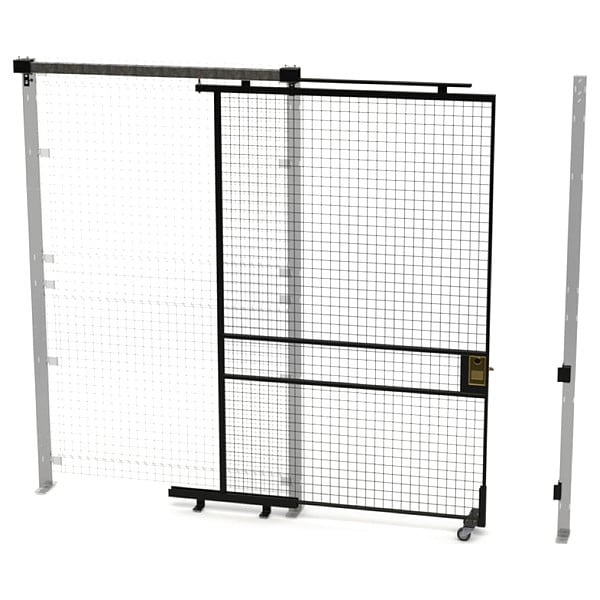 Tunnel Sliding Door, Wire Mesh Opening Height 2 in, Wire Mesh Opening Width 2 in, Powder-Coated, Overall Height 8 ft, Overall Depth 1 3/4 in, Overall Width 5 ft, Black, Includes Mounting Hardware Yes, Steel, Wire Thickness 8 ga
