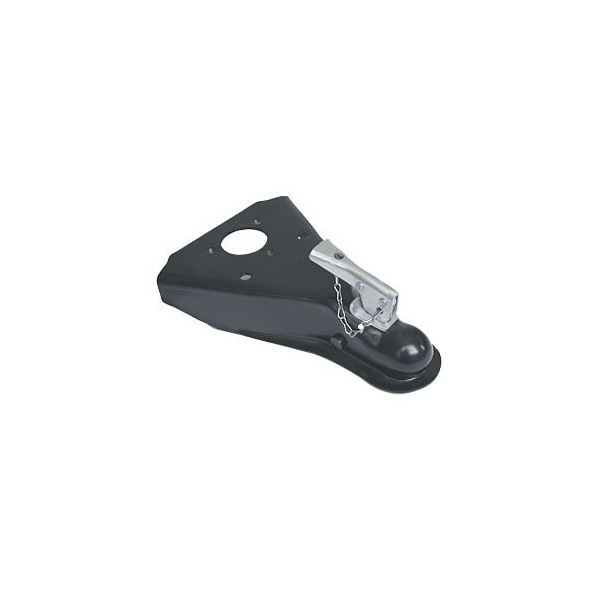 Husky Towing 87077 A-frame trailer coupler designed to be welded onto trailers with 50-degree angle frames; rated for 5,000 lb gross trailer weight capacity; compatible with 2 in hitch balls; suitable for SAE Class III and IV towing applications; ideal for utility and cargo trailers requiring a permanent coupler installation. Constructed from steel with black finish; wedge-style latch provides secure ball engagement; integrated safety chain included to prevent loss of safety pin; mounting hardware not included due to weld-on installation design; ball diameter 2 in; latch type wedge; lift capacity 5,000 lb; hitch class III; easy installation by welding; limited 1-year warranty; Prop 65 compliant.