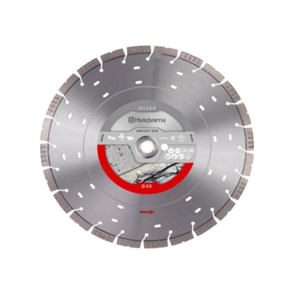 Husqvarna, Silver, 14in 125 1DP-20mmB Vari-Cut S45 Blade. The Vari-Cut S45 is specially designed for cutting diverse types of concrete. The blade features two alternate segment designs for lower vibrations, less friction and better slurry evacuation.
