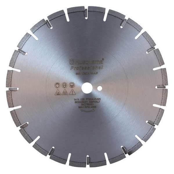 Diamond Saw Blade, F780A Series, Blade Dia. 14 in, Arbor Size 1 in, Arbor Shape Round, Max. Blade Speed 4,365 RPM, Max. Saw Power 80 hp, For Use With Saw Type Large Flat Saws, Cutting Type Wet, Rim Type Segmented, Max. Cutting Depth 4 5/8 in, Materials Cut Asphalt, For Use On Concrete Type Asphalt, Grade Better, Cut Width 0.13 in, Blade Material Diamond
