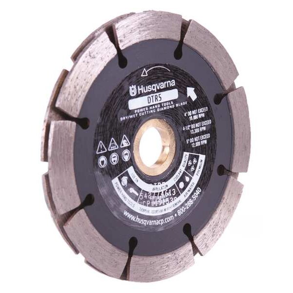 Diamond Saw Blade, Tuckpoint DTR5 Series, Blade Dia. 4 1/2 in, Arbor Size 5/8 in, 7/8 in, Arbor Shape Round, Max. Blade Speed 1,350 RPM, Max. Saw Power 3 hp, For Use With Saw Type Angle Grinders, Cutting Type Wet/Dry, Rim Type Segmented, Max. Cutting Depth 1 1/4 in, Materials Cut Masonry, For Use On Concrete Type Aggressive Mortar Removal, Grade Better, Cut Width 0.25 in, Blade Material Diamond
