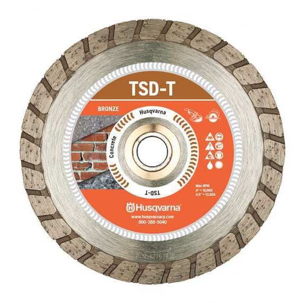Diamond Saw Blade, Tacti-Cut T Series, Blade Dia. 4 in, Arbor Size 5/8 in, 13/16 in, 7/8 in, Arbor Shape Round, Max. Blade Speed 15,000 RPM, Max. Saw Power 3 hp, For Use With Saw Type Angle Grinders, Circular Saws, Tile Saws, Cutting Type Wet/Dry, Rim Type Turbo, Max. Cutting Depth 1 in, Materials Cut Brick, Granite, Marble, Grade Good, Cut Width 0.08 in, Blade Material Diamond