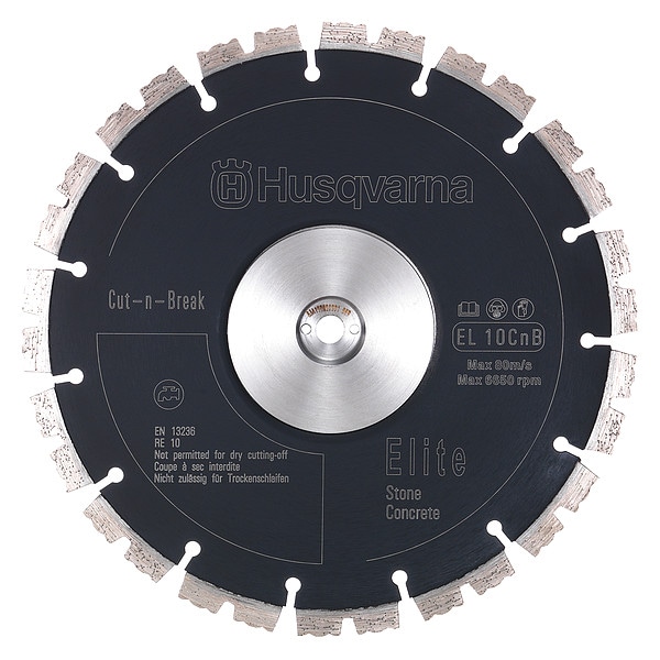 Diamond Saw Blade, CnB Series, Blade Dia. 9 in, Arbor Size 1 in, Arbor Shape Round, Max. Blade Speed 6,790 RPM, Max. Saw Power 1.5 hp, For Use With Saw Type Power Cutters, Cutting Type Wet, Rim Type Segmented, Max. Cutting Depth 16 in, Primary Material Application Concrete, Materials Cut Concrete, For Use On Concrete Type Soft Aggregate, Blade Thickness 0.11 in, Cut Width 0.11 in, Blade Material Diamond, Steel, Finish Unfinished