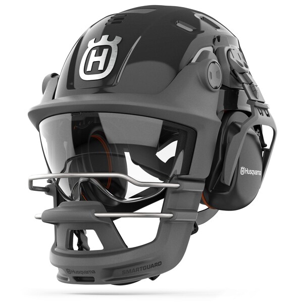 This unique helmet is part of the SmartGuard family of protective equipment for handheld cutting. It is equipped with chin guard protection, which can reduce the severity of injuries from blade contact if a kick-back occurs. The helmet is sturdy, yet lightweight and well ventilated for maximum comfort. It offers a universal fit and a wheel ratchet for easy size adjustment. Also equipped with earmuffs and a visor.