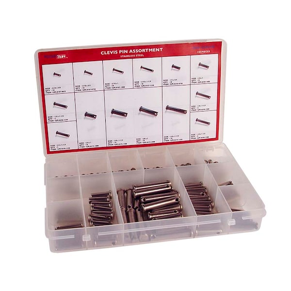 Assortments-Clevis Pins. Clevis Pin Asst SS PL 120pc