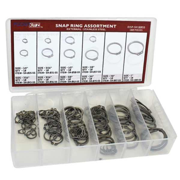 External Retaining Ring Assortment, Stainless Steel, 100 Pieces